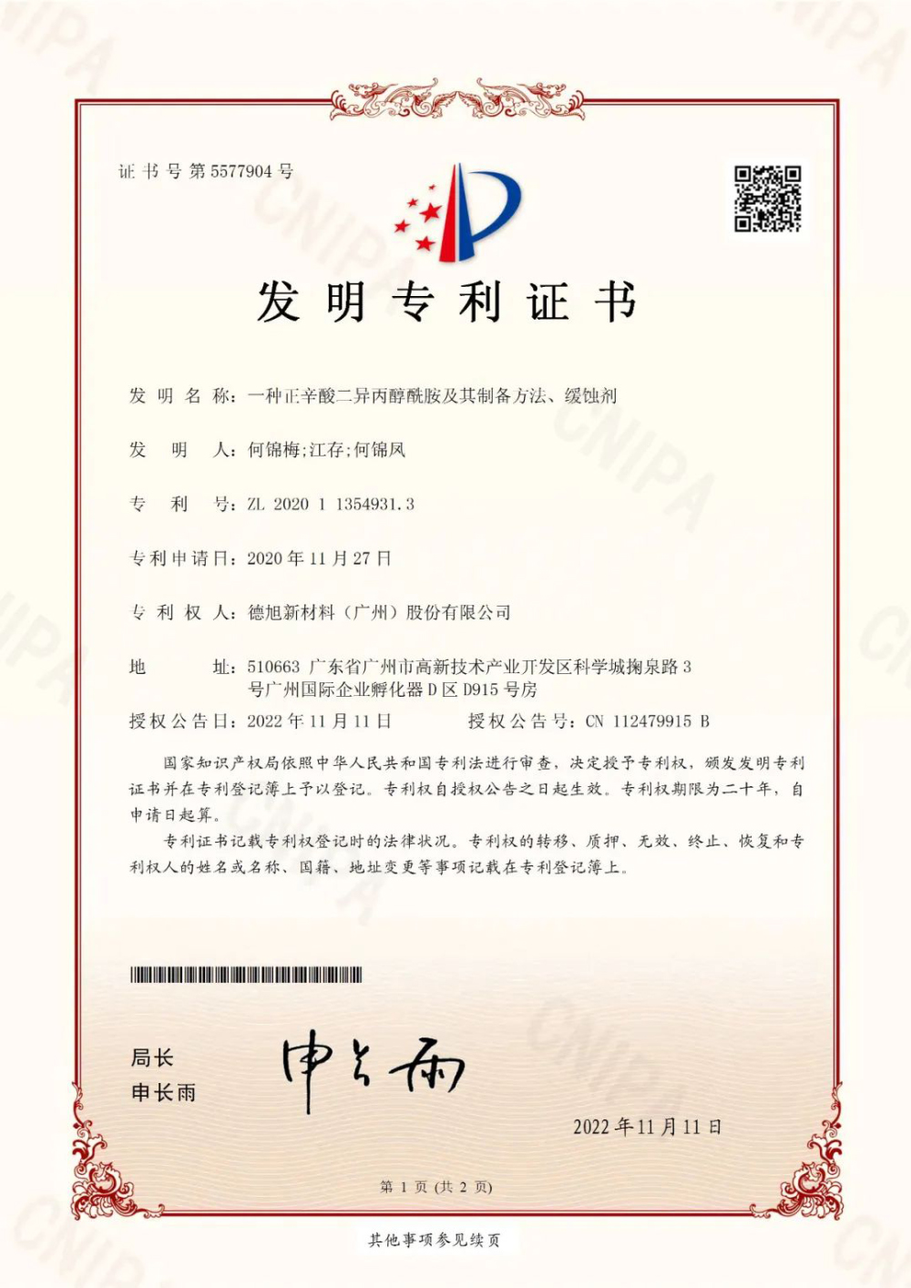 德旭新材料(廣州)股份有限公司成立于2012年,坐落于國內(nèi)新材料領(lǐng)域創(chuàng)新集聚區(qū)的廣州高新技術(shù)產(chǎn)業(yè)開發(fā)區(qū)核心位置——廣州科學(xué)城,是一家集研發(fā)、生產(chǎn)、銷售于一體且擁有自主知識產(chǎn)權(quán)的專精特新企業(yè)。長期專注于金屬材料的防腐蝕研究與創(chuàng)新,為汽車與船舶、航空航天、半導(dǎo)體及3C電子、新能源、水性防腐涂料等領(lǐng)域的金屬防腐蝕提供產(chǎn)品和解決方案。同時(shí)也服務(wù)于工業(yè)潤滑、金屬表面處理、工業(yè)、商用和民用重油污清洗和益智玩具等行業(yè)。公司產(chǎn)品獲得BASF(巴斯夫)、HP(惠普)、漢高、美泰、MOOSE、中國船舶、中國機(jī)械總院、安集、匯川、三環(huán)、晨光等國內(nèi)外知名企業(yè)的青睞。